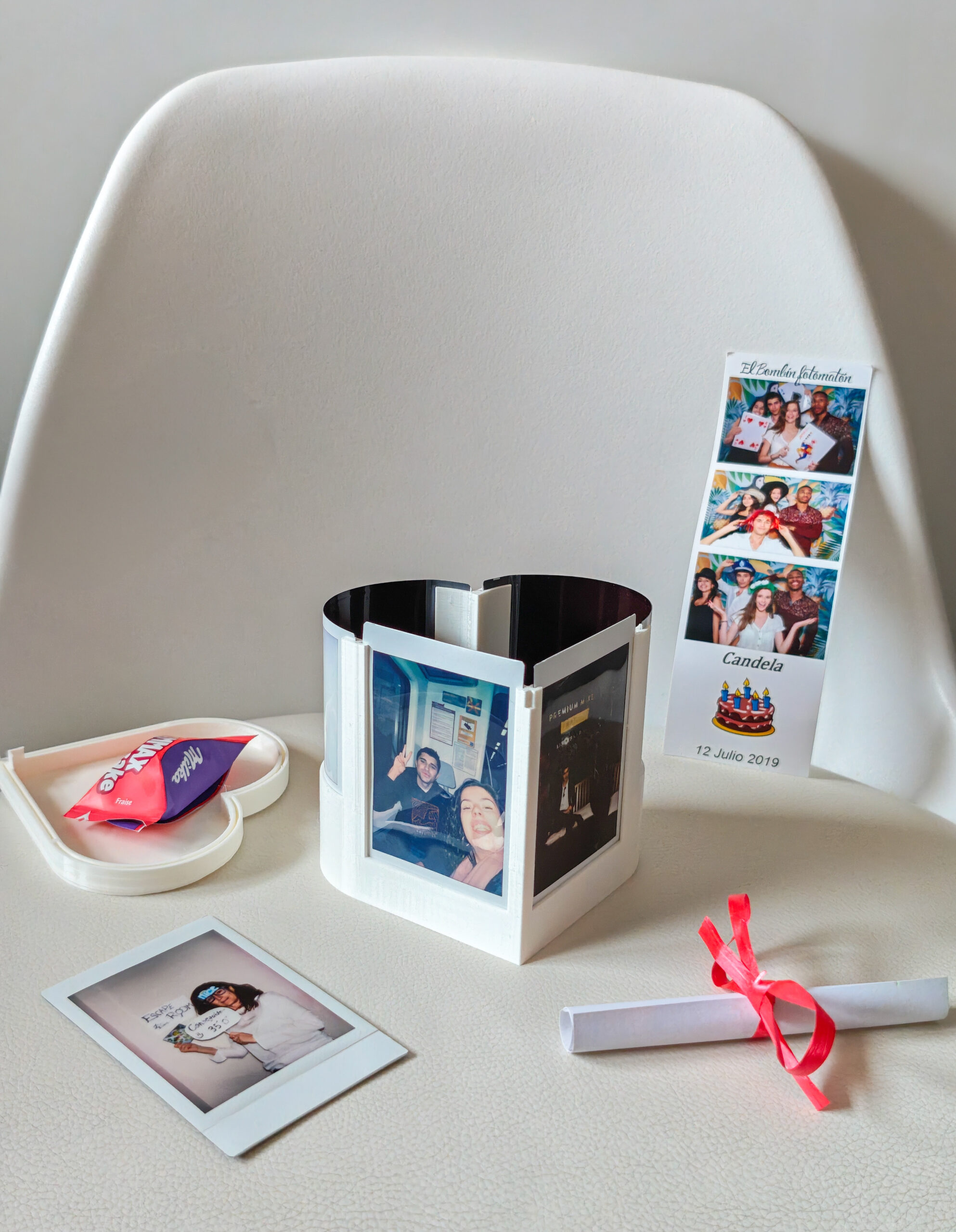 También funciona como caja regalo: una vez colocadas las fotos, el interior puede llenarse con chocolates, joyas, notas o pequeños detalles 🎁, creando una experiencia antes de descubrir la sorpresa.
