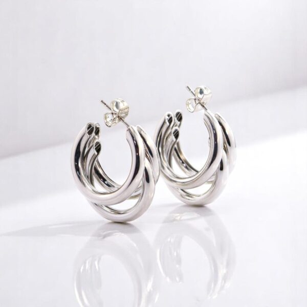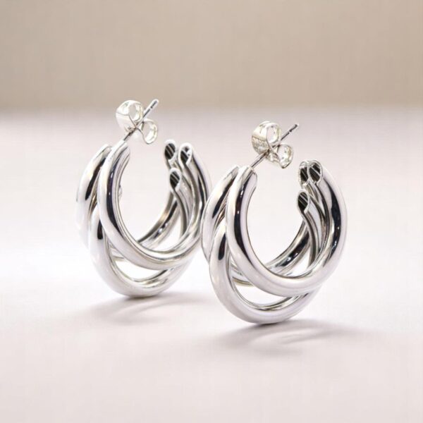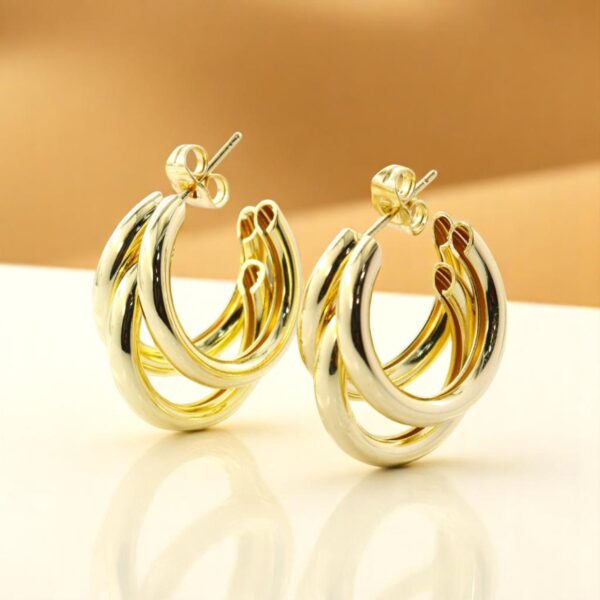 Elegancia sutil con un giro moderno. Estas candongas destacan por su diseño de triple aro, creando un efecto dinámico y sofisticado que no pasa desapercibido.