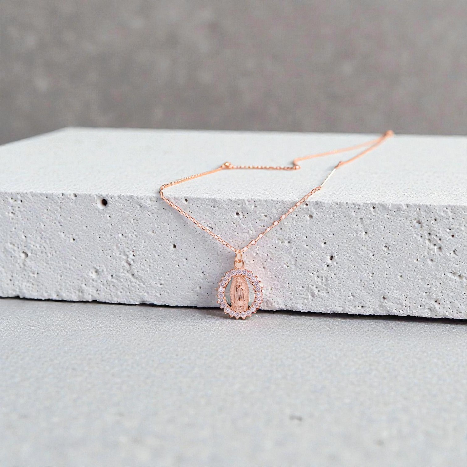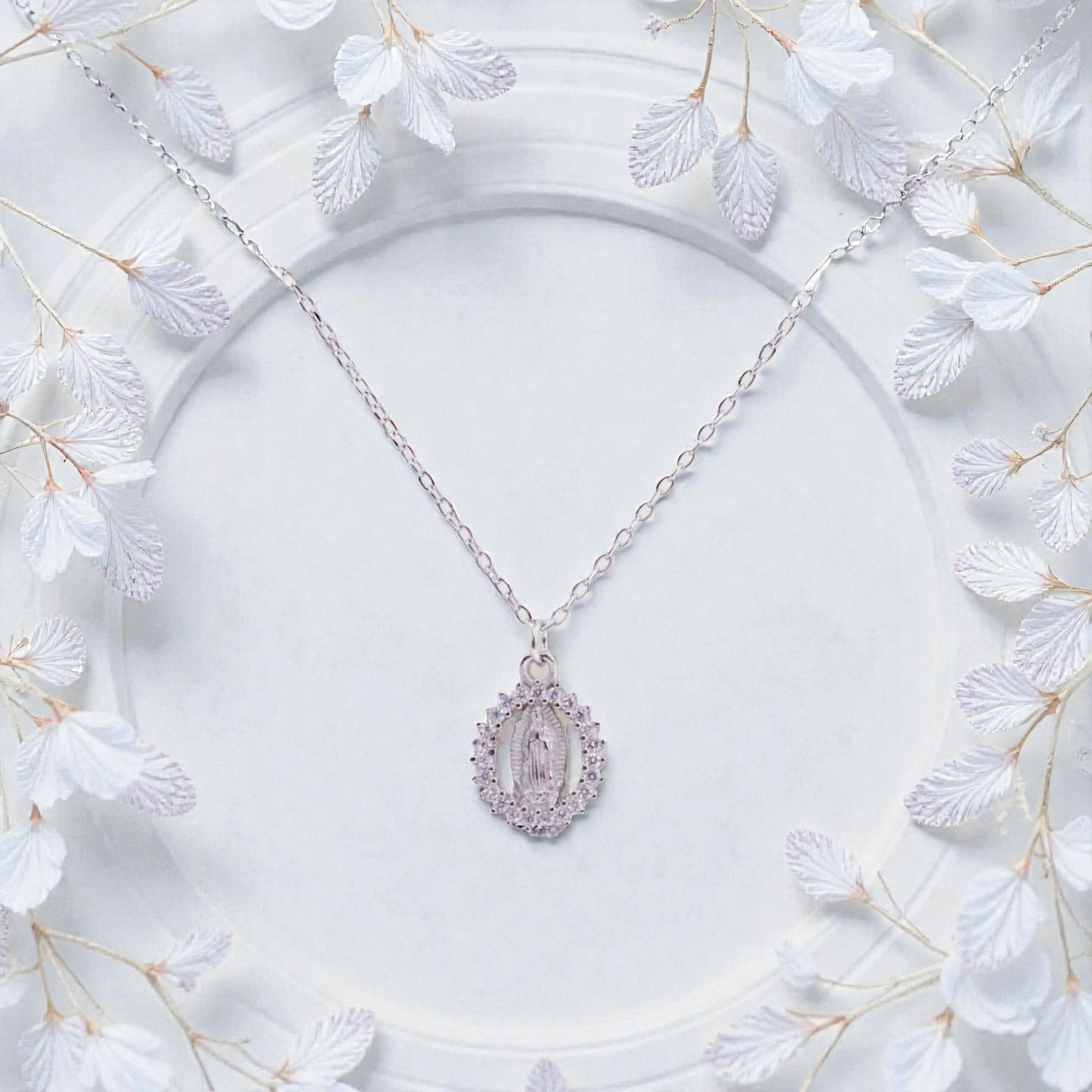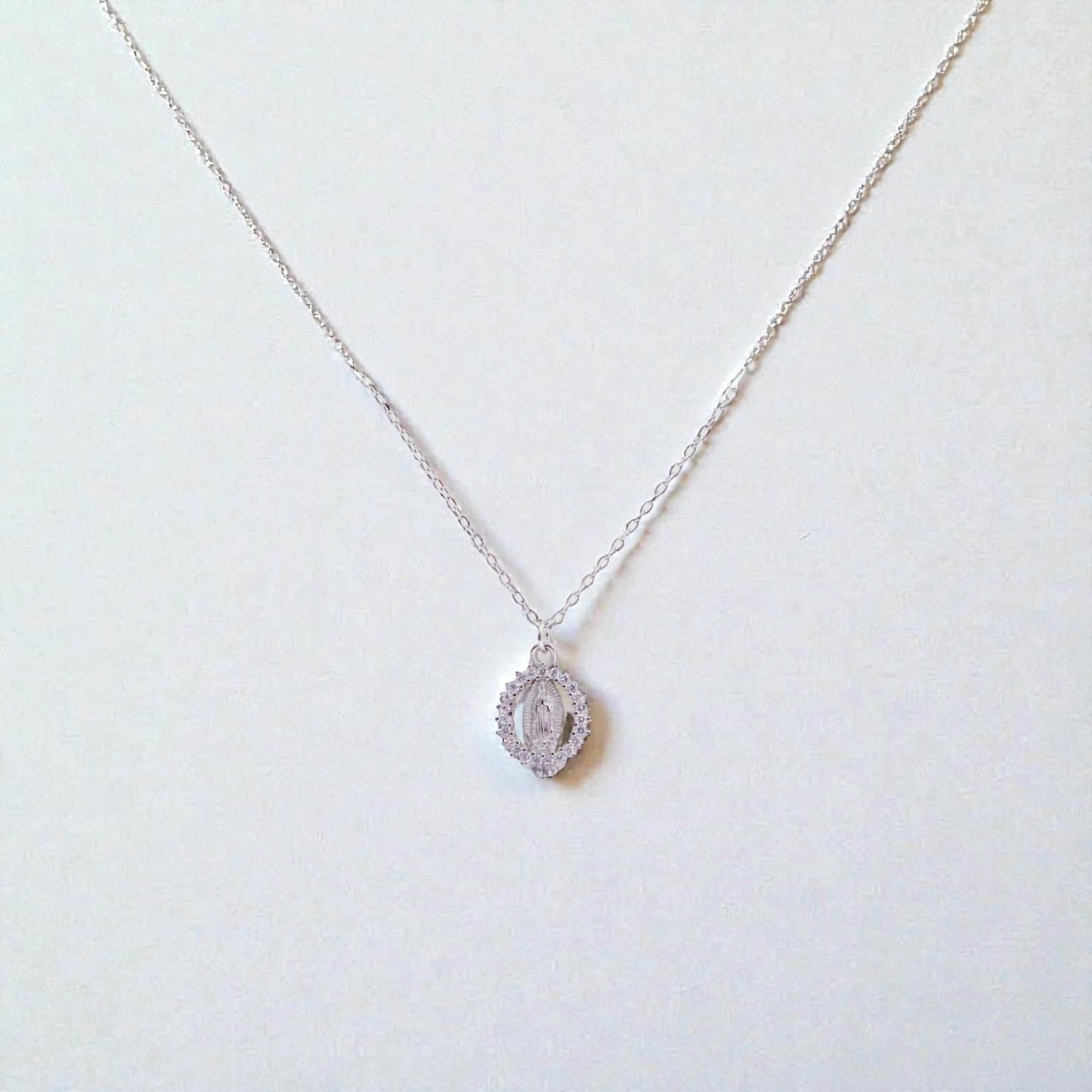Collar Virgen de Guadalupe en Plata Esterlina Rodinada