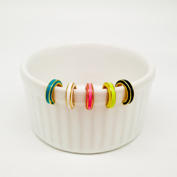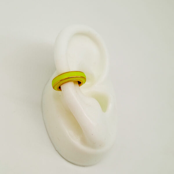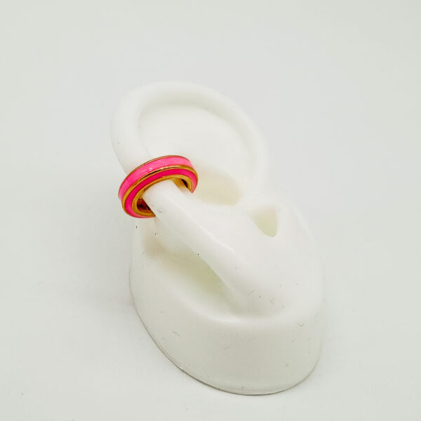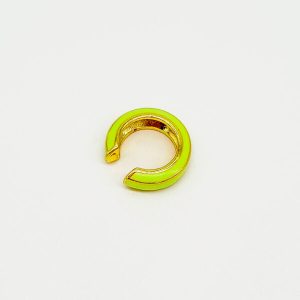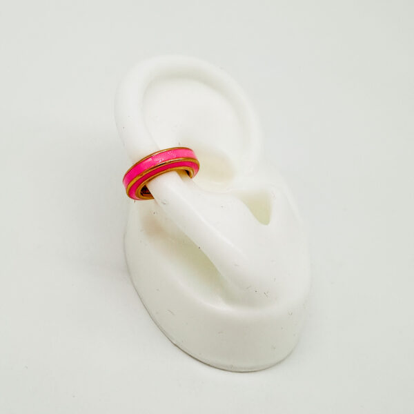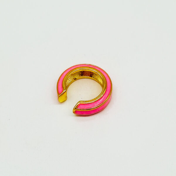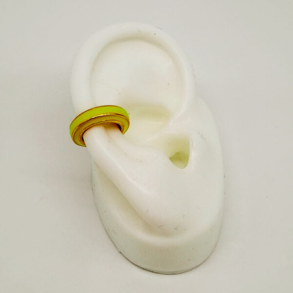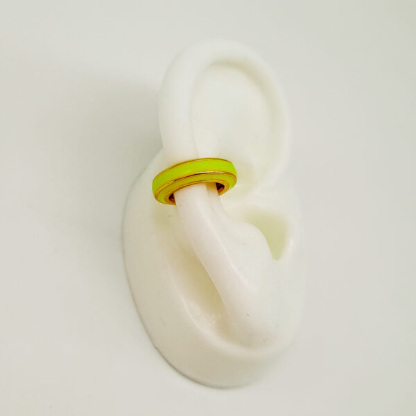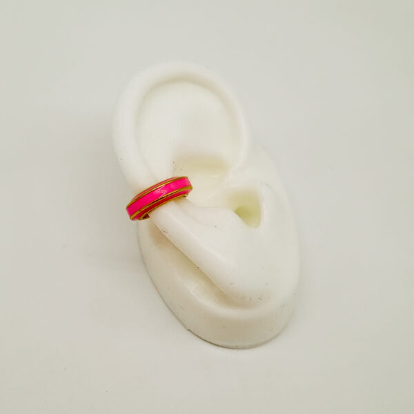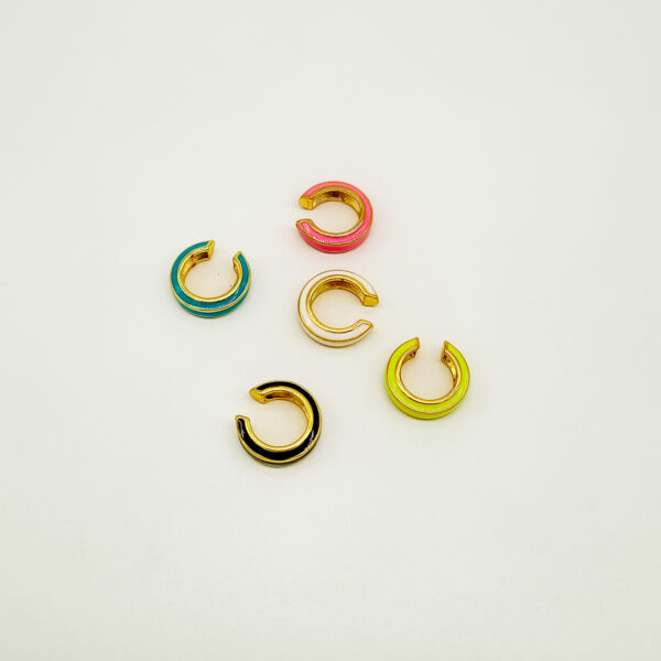 Es la opción perfecta para quienes aman añadir un toque vibrante y divertido a su look. Disponible en una variedad de tonos rosa, verde, amarillo, blanco y negro, este accesorio es ideal para combinar o usar en solitario, creando un estilo único y personalizado. Su acabado dorado resalta el color y aporta un toque de elegancia, mientras que su diseño cómodo no requiere perforaciones.