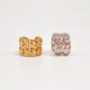 - Material: Este accesorio está hecho con una base de cobre recubierta primero con una capa de Oro y luego con una capa de Rodio, que protege y sella el acabado. Esta combinación aporta la elegancia del oro y el brillo duradero del rodio, resultando en una pieza resistente y sofisticada.