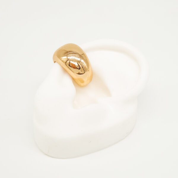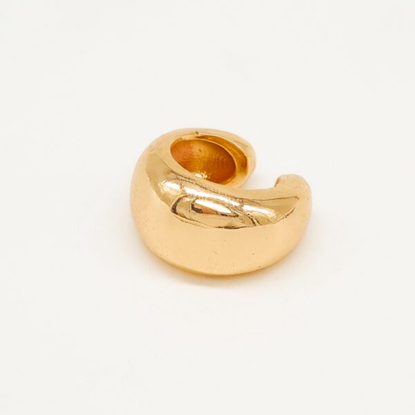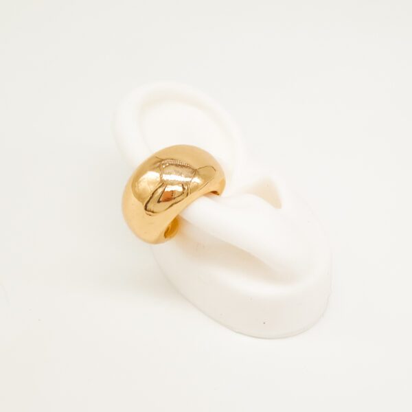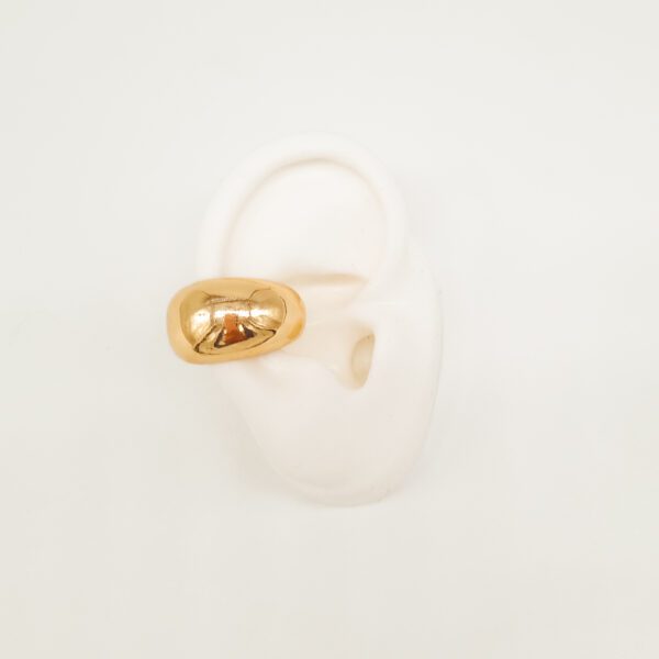 Es un accesorio que destaca por su diseño sofisticado. Su forma ovalada y superficie lisa en dorado lo convierten en una pieza versátil, ideal para añadir un toque de elegancia a cualquier look. Sin necesidad de perforaciones, este earcuff es perfecto para quienes buscan un estilo clásico con un toque moderno.