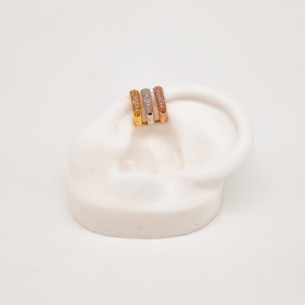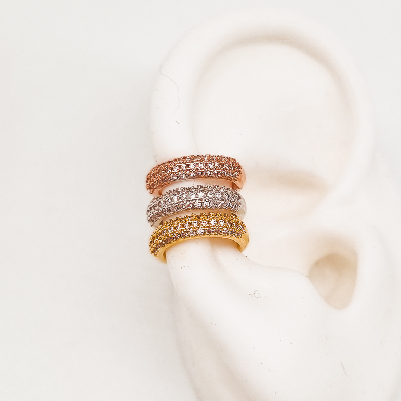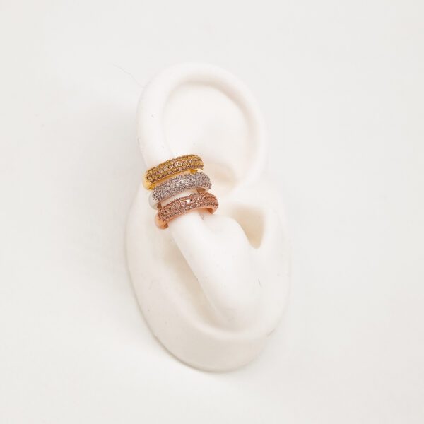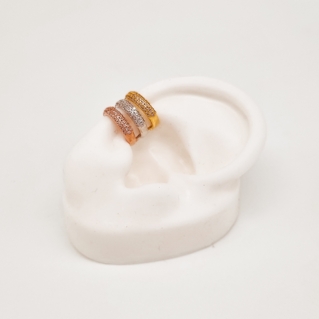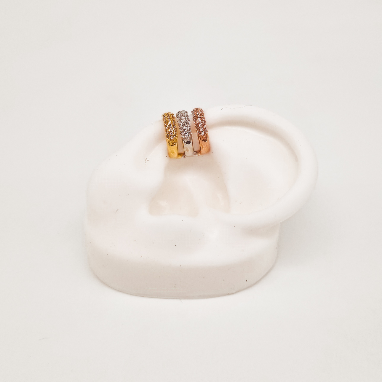 Es una pieza que combina la belleza y sofisticación de tres tonalidades: dorado, plateado y oro rosa. Este diseño único añade profundidad y brillo a tu look, permitiéndote destacar con un toque de elegancia moderna. Con un acabado texturizado y sin necesidad de perforaciones, este earcuff es ideal para quienes buscan un estilo versátil y refinado.