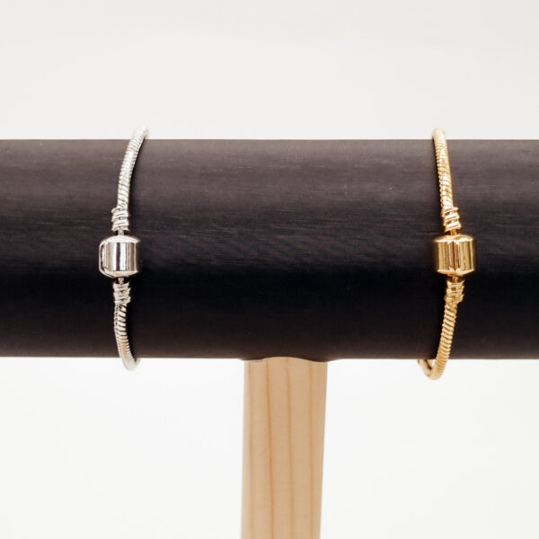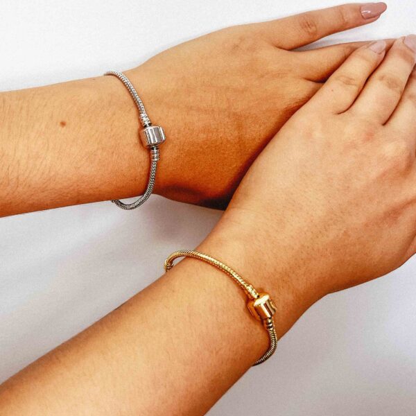 Estas encantadoras pulseras son el complemento perfecta para realzar tu estilo en cualquier ocasión. Ya sea que prefieras el acabado en plata para un estilo sutil y refinado, o el acabado en oro para un brillo deslumbrante, estas pulseras son la opción perfecta para expresar tu estilo único.