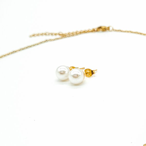 Set Collar Corbatín + Aretes de Perla en Acero Inoxidable