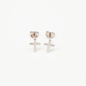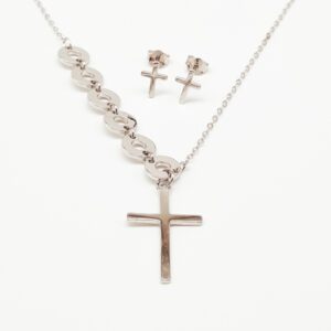 Set Collar dije Cruz y Aros+ Topos en Plata Esterlina 925 Rodinada