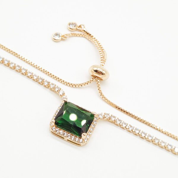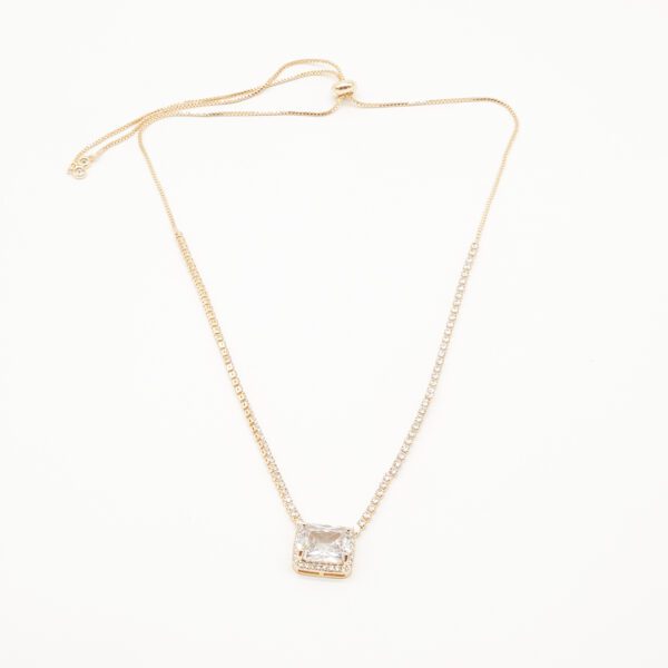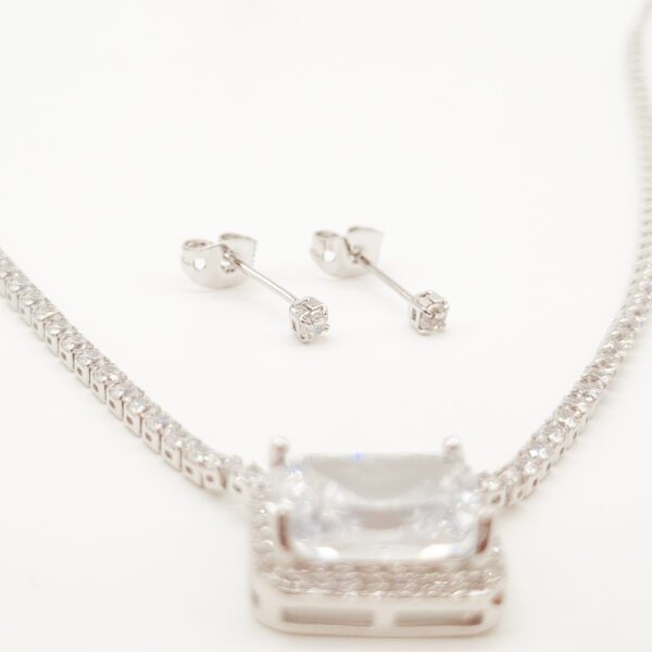 Un set elegante y moderno para lucir en cualquier ocasión ✨. El collar tiene un dije central rectangular con brillo, acompañado de una cadena delgada y ajustable que se adapta fácilmente a diferentes largos. Los topos pequeños a juego completan el look con un toque discreto y sofisticado 💎