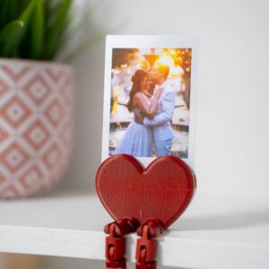 Este soporte es fabricado en Colombia, directamente por nuestro equipo, utilizando impresoras 3D de alta precisión bajo pedido y con especial atención a cada detalle. El acabado suave y sus líneas limpias hacen que no solo sostenga tus fotos, sino que también se convierta en un pequeño objeto decorativo con personalidad.